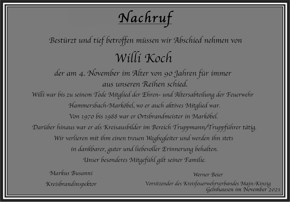 Trauer um Willi Koch