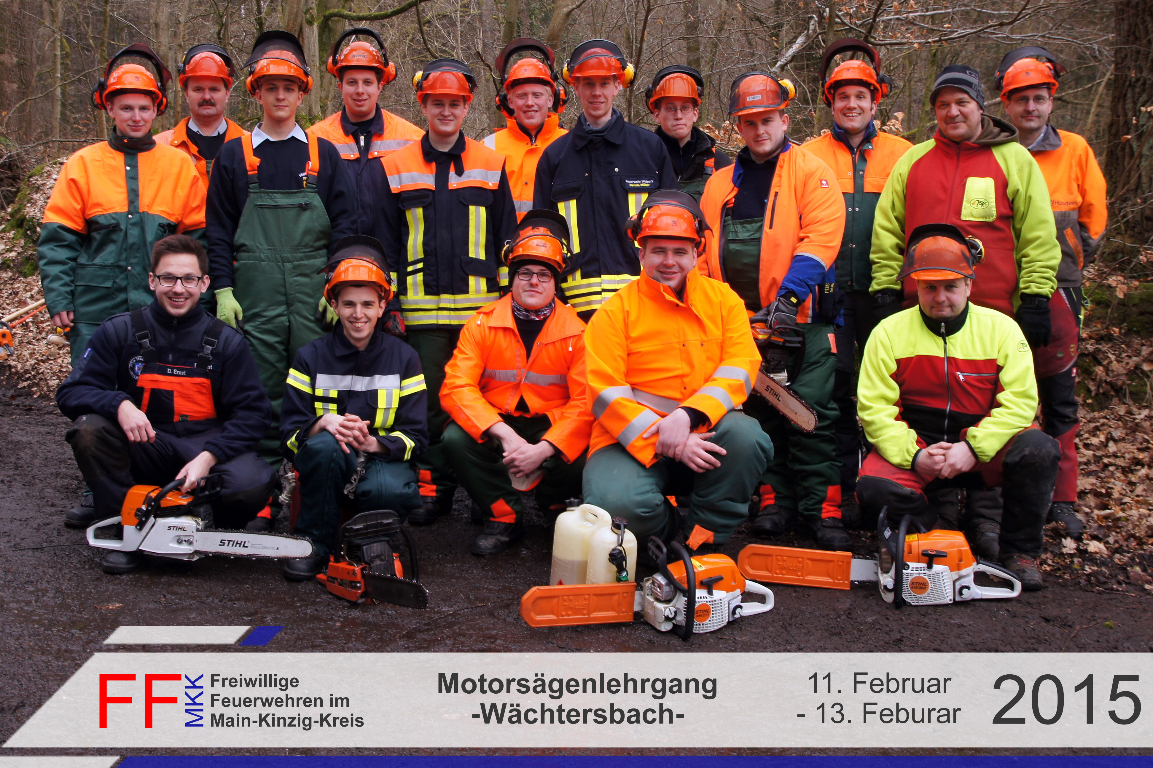 Im Wald rund um Wächtersbach war es in den letzten drei Tagen sehr unruhig. Feuerwehrmänner aus dem Kreisgebiet, 13 an der Zahl, wurden während eines Ganztageslehrgangs im Umgang mit der Motorkettensäge ausgebildet. Diese, nun befähigt auch im Einsatz die Motorkettensäge zu bedienen, unterstützen die Kameradinnen und Kameraden der Heimatwehren beim Beseitigen der nächsten Sturmschäden… auch wenn wir hoffen, dass kein Unwetter aufzieht: Gut zu wissen neue Sägenführer im MKK zu haben. Von uns aus herzlichen Glückwunsch allen Teilnehmern zum bestandenen Lehrgang und stets ein verletzungsfreies Arbeiten!