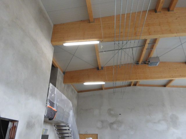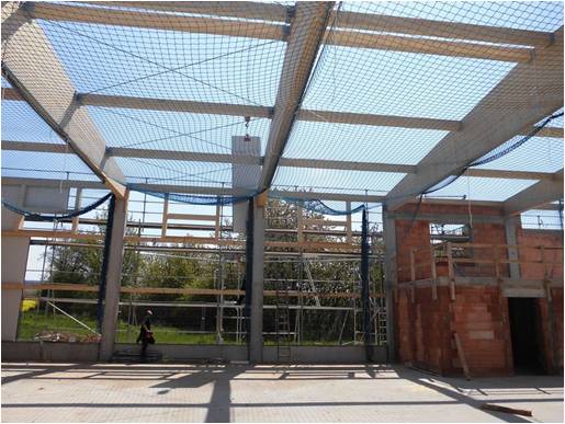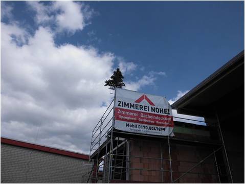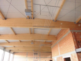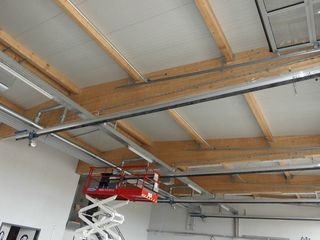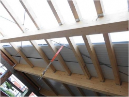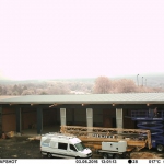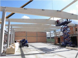 – Montage der Leimbinder für den Unterrichtsraum, Flur und Küche
