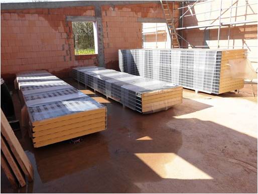 – Montage der Dachelemente für den Unterrichtsraum, Flur und Küche
