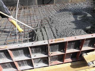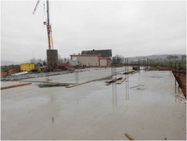 – Betonieren der Bodenplatte im Bereich der Sozial- und Werkstatträume