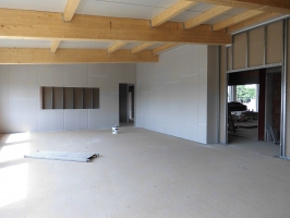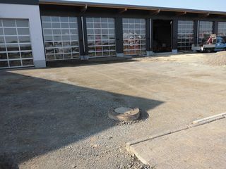 – Die Fahrzeughalle und Räumlichkeiten der neuen Rettungswache werden verputzt.