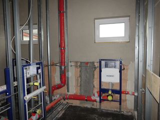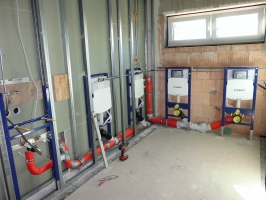 – Die Unterspülkästen für die Sanitärobjekte werden gesetzt