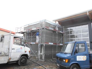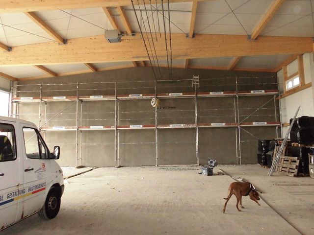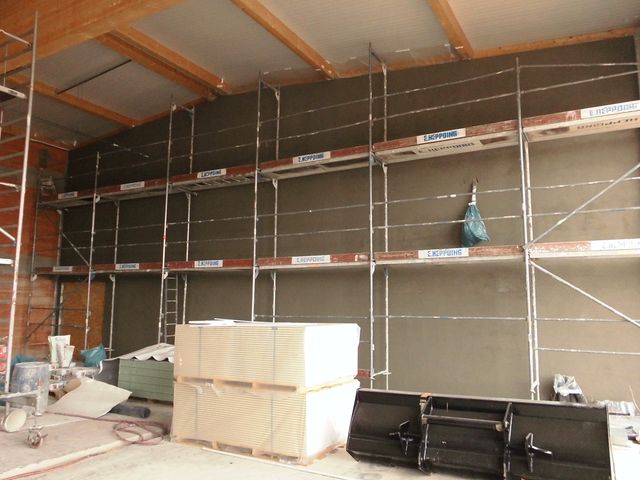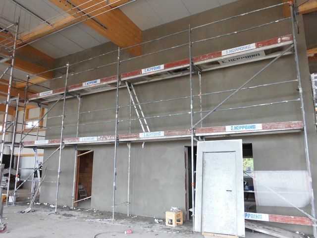 – Die Wände in der Fahrzeughalle und den Räumlichkeiten werden verputzt.