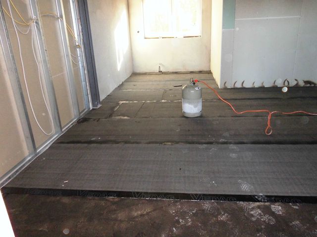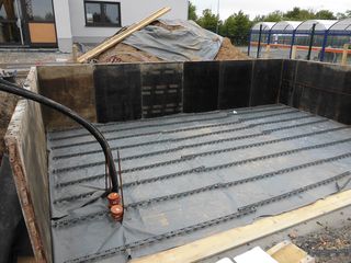 – Bitumenbahnen werden verlegt und der Fussboden wird angelegt.