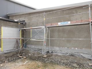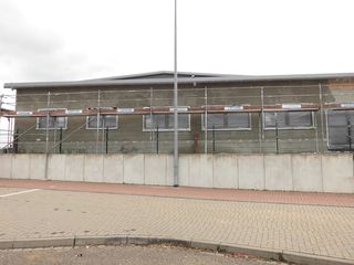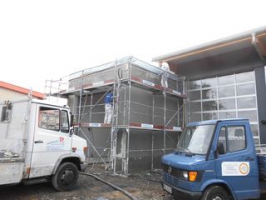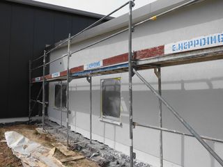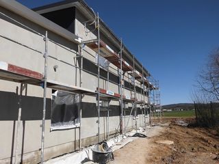 – Die Außenseiten des Rettungsdienstgebäudes werden verputzt