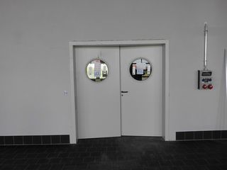 – Die Brandschutztüren im Hilfeleistungszentrum werden montiert