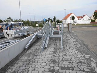 – Die Halter für die Fahnenmasten werden einbetoniert