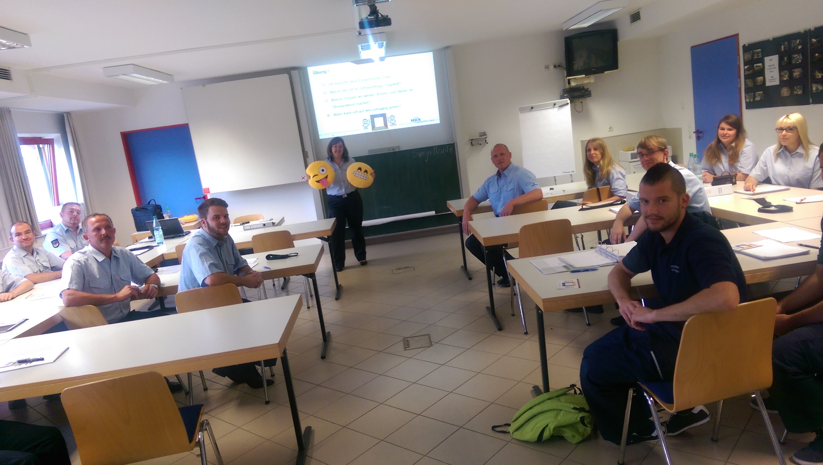 Bildunterschrift Titelbild: Was Emojis ausdrücken und was nicht: Kreisausbilderin für Kommunikation Svenja Moritz mit den Lehrgangsteilnehmern.