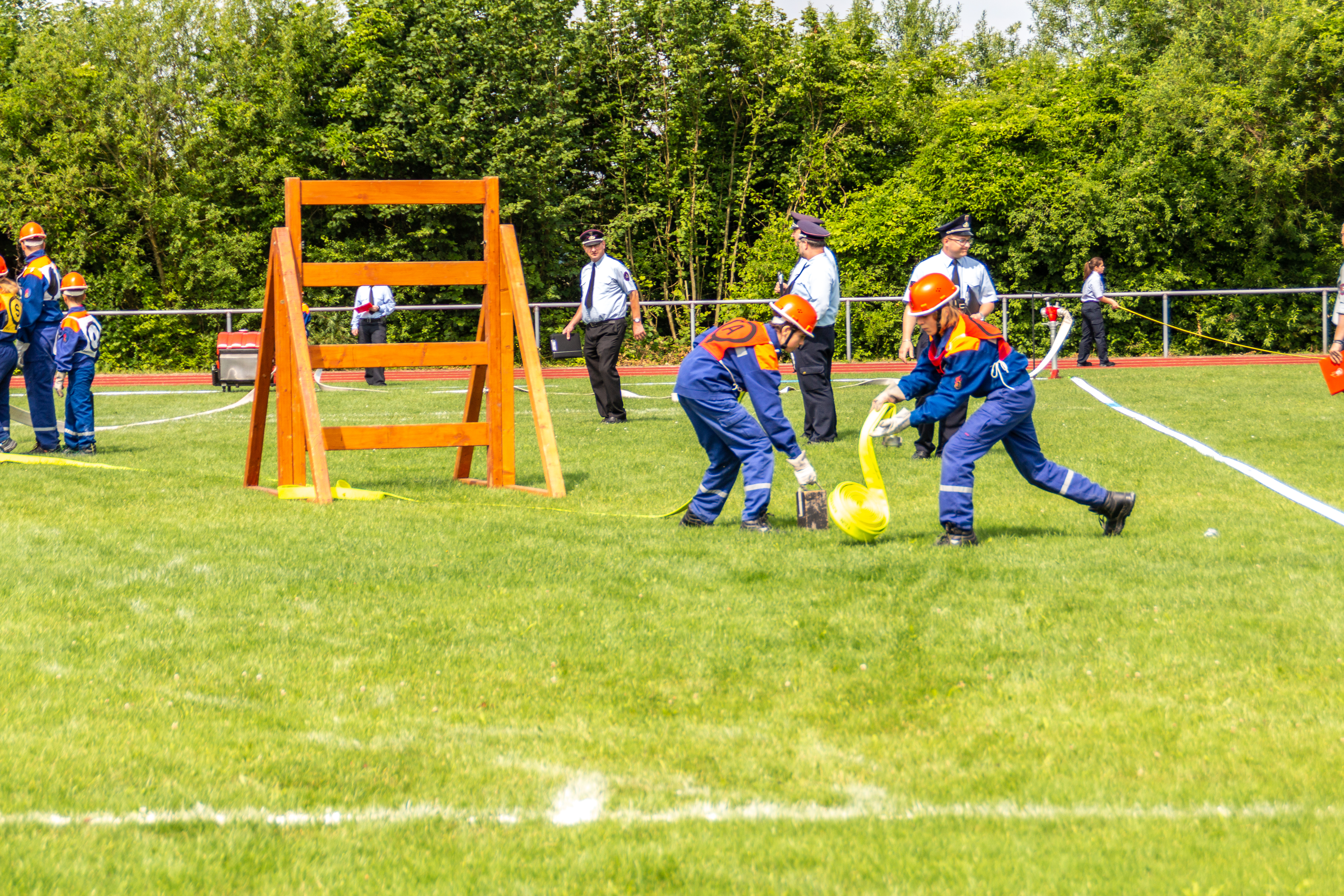 Nach den Regeln der Bundeswettbewerbsordnung der Deutschen Jugendfeuerwehr durchliefen 7 Gruppen und 10 Staffeln die beiden Teile des Wettbewerbs. Im sogenannten A-Teil muss unter einer Zeitvorgabe ein Löschangriff aufgebaut werden. Dabei gilt es Hindernisse wie einen imaginären Wassergraben, eine Leiterwand, Hürde oder Kriechtunnel zu überwinden. Im Anschluss werden ebenfalls unter Zeitnahme vier Knoten und Stiche aus dem feuerwehrtechnischen Gebrauch angelegt.