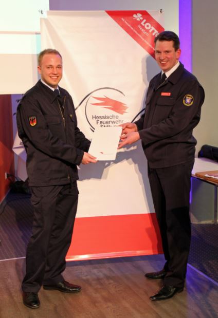 Im Rahmen des Empfangs anlässlich der Verbandsversammlung des LFV Hessen am 29. April 2016 in Korbach wurde das neue Logo der Hessischen Feuerwehrstiftung präsentiert. Entworfen wurde das Logo vom Feuerwehrkameraden Florian Grün aus Hasselroth (Main-Kinzig-Kreis), der seinen Logovorschlag im Rahmen der Veranstaltung gemeinsam mit dem Stiftungsvorsitzenden, Dr. Christoph Weltecke, vorstellte. Der Stiftungsvorstand hatte bereits kurz nach der Gründung beschlossen, dass die Stiftung ein Logo mit hohem Wiedererkennungswert benötigt, das ihr ein unverwechselbares Gesicht gibt. Deshalb wurde im April 2015 ein öffentlicher Ideenwettbewerb ausgeschrieben, in dem Vorschläge für ein Logo für die Hessische Feuerwehrstiftung gesucht wurden. Für den Gewinn des Wettbewerbs war ein Preisgeld vorgesehen. Die eingereichten Logoentwürfe konnten entweder eine Wortmarke oder eine Kombination aus Wort und Bildmarke sein. Sie sollten prägnant und einprägsam und mit dem aktuellen Logo des LFV Hessen kombiniert sein. Zum Einsendeschluss wurden insgesamt 24 Vorschläge eingereicht. Diese wurden von Vorstand und Kuratorium der Stiftung im November 2015 gesichtet und die ersten drei Plätze festgelegt. Zwischenzeitlich war es gelungen, Lotto Hessen als Partner für den Logowettbewerb zu gewinnen. Dank dieser Unterstützung konnten die Präsentation des Siegerentwurfs in einem angemessenen Rahmen vorgenommen und die Preisgelder für die Wettbewerbsteilnehmer erhöht werden. Der Vorstand der Hessischen Feuerwehrstiftung freut sich über den erfolgreichen Abschluss des Logowettbewerbs und hofft, dass das neue Logo der Stiftung zukünftig ein unverwechselbares Gesicht geben wird.