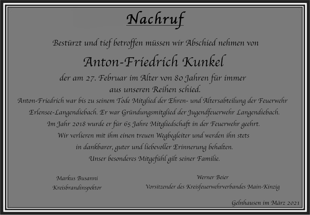 Zeige grösseres Bild Trauer um Anton-Friedrich Kunkel Von FFMKK Administration|8. März 2021| Über den Autor: FFMKK Administration Ähnliche Beiträge Interessante Informationsfahrt der Leiterinnen und Leiter der Feuerwehren des Main-Kinzig-Kreises nach Dresden Gallerie Interessante Informationsfahrt der Leiterinnen und Leiter der Feuerwehren des Main-Kinzig-Kreises nach Dresden Kostenlose Brandschutzhelferschulung für Kommunen Gallerie Kostenlose Brandschutzhelferschulung für Kommunen Großübung der Jugendfeuerwehren der Region Hanau-Land Gallerie Großübung der Jugendfeuerwehren der Region Hanau-Land Feuerwehrsenioren besuchen Kassel: Ein Tag voller Erinnerungen und Sehenswürdigkeiten Gallerie Feuerwehrsenioren besuchen Kassel: Ein Tag voller Erinnerungen und Sehenswürdigkeiten Kreisentscheid Hessische Feuerwehrleistungsübung 2025 Gallerie Kreisentscheid Hessische Feuerwehrleistungsübung 2025
