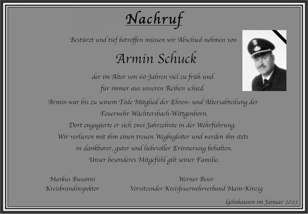 Zeige grösseres Bild Trauer um Armin Schuck Von FFMKK Administration|29. Januar 2023| Über den Autor: FFMKK Administration Ähnliche Beiträge Interessante Informationsfahrt der Leiterinnen und Leiter der Feuerwehren des Main-Kinzig-Kreises nach Dresden Gallerie Interessante Informationsfahrt der Leiterinnen und Leiter der Feuerwehren des Main-Kinzig-Kreises nach Dresden Kostenlose Brandschutzhelferschulung für Kommunen Gallerie Kostenlose Brandschutzhelferschulung für Kommunen Großübung der Jugendfeuerwehren der Region Hanau-Land Gallerie Großübung der Jugendfeuerwehren der Region Hanau-Land Feuerwehrsenioren besuchen Kassel: Ein Tag voller Erinnerungen und Sehenswürdigkeiten Gallerie Feuerwehrsenioren besuchen Kassel: Ein Tag voller Erinnerungen und Sehenswürdigkeiten Kreisentscheid Hessische Feuerwehrleistungsübung 2025 Gallerie Kreisentscheid Hessische Feuerwehrleistungsübung 2025
