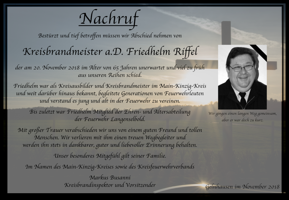 Zeige grösseres Bild Trauer um KBM a.D. Friedhelm Riffel Von FFMKK Administration|21. November 2018| Über den Autor: FFMKK Administration Ähnliche Beiträge Einladung zum Kreisfeuerwehrtag 50 Jahre Kreisfeuerwehrverband Main-Kinzig Gallerie Einladung zum Kreisfeuerwehrtag 50 Jahre Kreisfeuerwehrverband Main-Kinzig Trauer um Erich Bös Gallerie Trauer um Erich Bös Trauer um Erhard Winter Gallerie Trauer um Erhard Winter Trauer um Dieter Spahn Gallerie Trauer um Dieter Spahn Trauer um KBM a.D. Winfried Kirchner Gallerie Trauer um KBM a.D. Winfried Kirchner