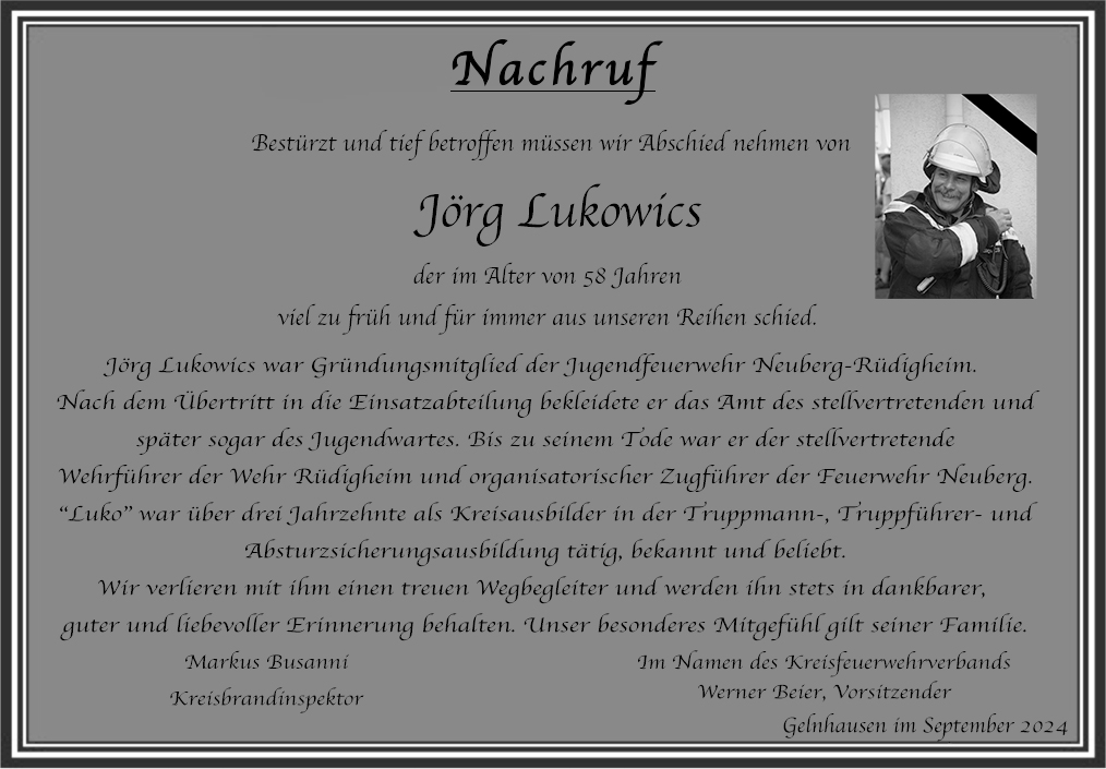 Zeige grösseres Bild Trauer um Jörg Lukowics Von FFMKK Administration|6. September 2024| Über den Autor: FFMKK Administration Ähnliche Beiträge Interessante Informationsfahrt der Leiterinnen und Leiter der Feuerwehren des Main-Kinzig-Kreises nach Dresden Gallerie Interessante Informationsfahrt der Leiterinnen und Leiter der Feuerwehren des Main-Kinzig-Kreises nach Dresden Kostenlose Brandschutzhelferschulung für Kommunen Gallerie Kostenlose Brandschutzhelferschulung für Kommunen Großübung der Jugendfeuerwehren der Region Hanau-Land Gallerie Großübung der Jugendfeuerwehren der Region Hanau-Land Feuerwehrsenioren besuchen Kassel: Ein Tag voller Erinnerungen und Sehenswürdigkeiten Gallerie Feuerwehrsenioren besuchen Kassel: Ein Tag voller Erinnerungen und Sehenswürdigkeiten Kreisentscheid Hessische Feuerwehrleistungsübung 2025 Gallerie Kreisentscheid Hessische Feuerwehrleistungsübung 2025