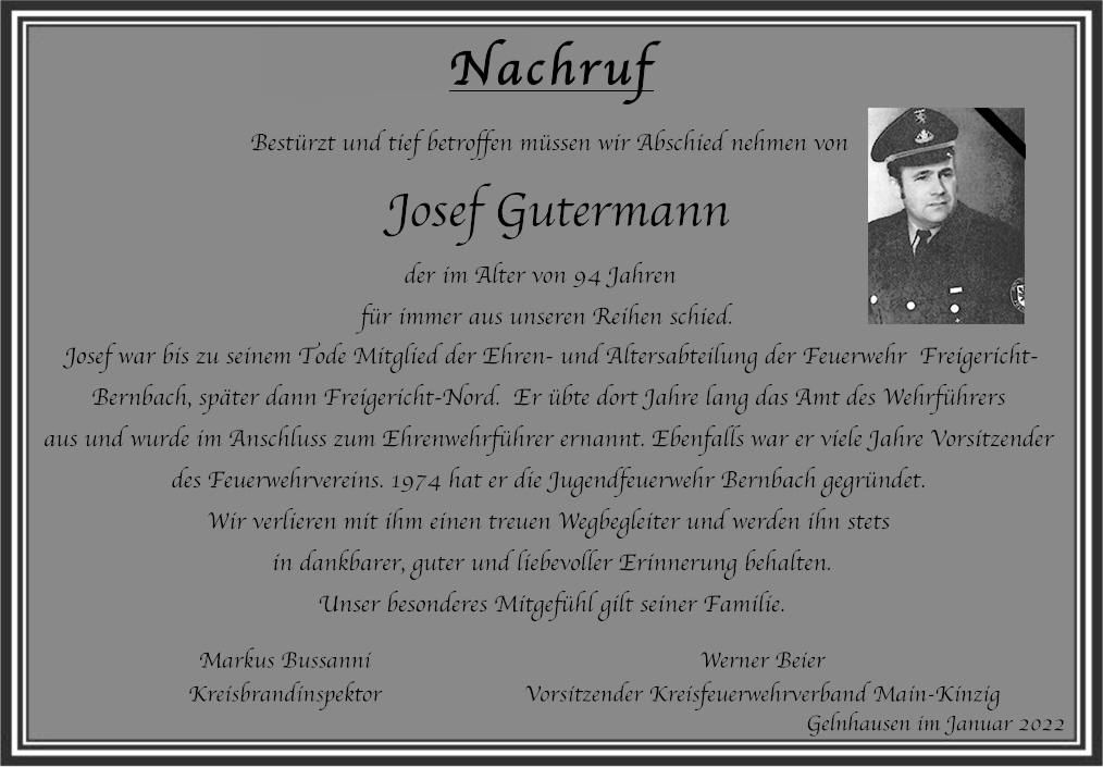 Trauer um Josef Gutermann