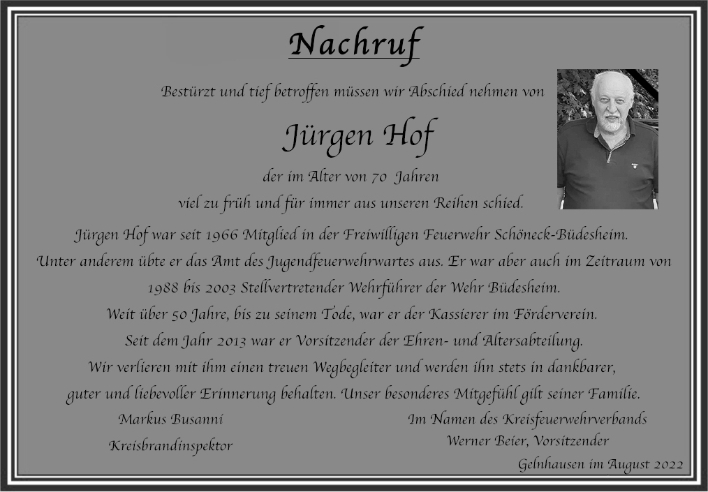 Zeige grösseres Bild Trauer um Jürgen Hof Von FFMKK Administration|17. August 2022| Über den Autor: FFMKK Administration Ähnliche Beiträge Interessante Informationsfahrt der Leiterinnen und Leiter der Feuerwehren des Main-Kinzig-Kreises nach Dresden Gallerie Interessante Informationsfahrt der Leiterinnen und Leiter der Feuerwehren des Main-Kinzig-Kreises nach Dresden Kostenlose Brandschutzhelferschulung für Kommunen Gallerie Kostenlose Brandschutzhelferschulung für Kommunen Großübung der Jugendfeuerwehren der Region Hanau-Land Gallerie Großübung der Jugendfeuerwehren der Region Hanau-Land Feuerwehrsenioren besuchen Kassel: Ein Tag voller Erinnerungen und Sehenswürdigkeiten Gallerie Feuerwehrsenioren besuchen Kassel: Ein Tag voller Erinnerungen und Sehenswürdigkeiten Kreisentscheid Hessische Feuerwehrleistungsübung 2025 Gallerie Kreisentscheid Hessische Feuerwehrleistungsübung 2025