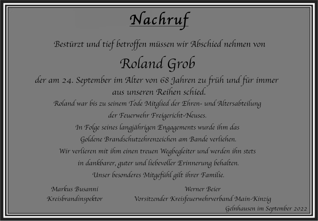 Zeige grösseres Bild Trauer um Roland Grob Von FFMKK Administration|3. Oktober 2022| Über den Autor: FFMKK Administration Ähnliche Beiträge Einladung zum Kreisfeuerwehrtag 50 Jahre Kreisfeuerwehrverband Main-Kinzig Gallerie Einladung zum Kreisfeuerwehrtag 50 Jahre Kreisfeuerwehrverband Main-Kinzig Trauer um Erich Bös Gallerie Trauer um Erich Bös Trauer um Erhard Winter Gallerie Trauer um Erhard Winter Trauer um Dieter Spahn Gallerie Trauer um Dieter Spahn Trauer um KBM a.D. Winfried Kirchner Gallerie Trauer um KBM a.D. Winfried Kirchner