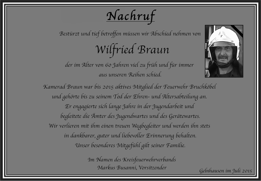Zeige grösseres Bild Trauer um Wilfried Braun Von FFMKK Administration|24. Juli 2015| Über den Autor: FFMKK Administration Ähnliche Beiträge Einladung zum Kreisfeuerwehrtag 50 Jahre Kreisfeuerwehrverband Main-Kinzig Gallerie Einladung zum Kreisfeuerwehrtag 50 Jahre Kreisfeuerwehrverband Main-Kinzig Trauer um Erich Bös Gallerie Trauer um Erich Bös Trauer um Erhard Winter Gallerie Trauer um Erhard Winter Trauer um Dieter Spahn Gallerie Trauer um Dieter Spahn Trauer um KBM a.D. Winfried Kirchner Gallerie Trauer um KBM a.D. Winfried Kirchner