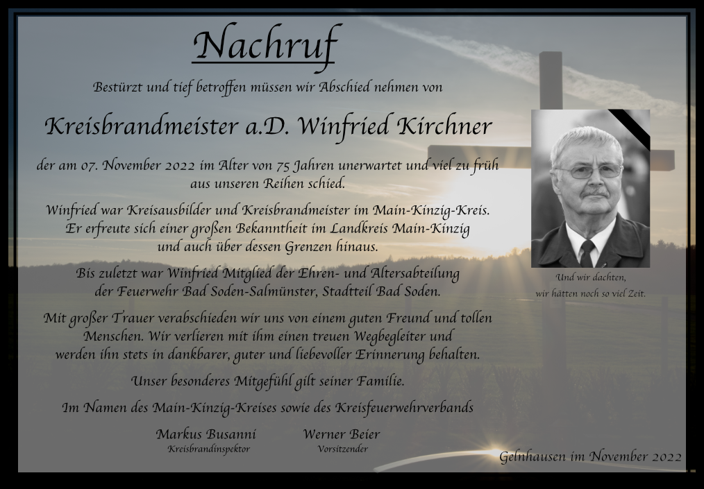 Trauer um KBM a.D. Winfried Kirchner